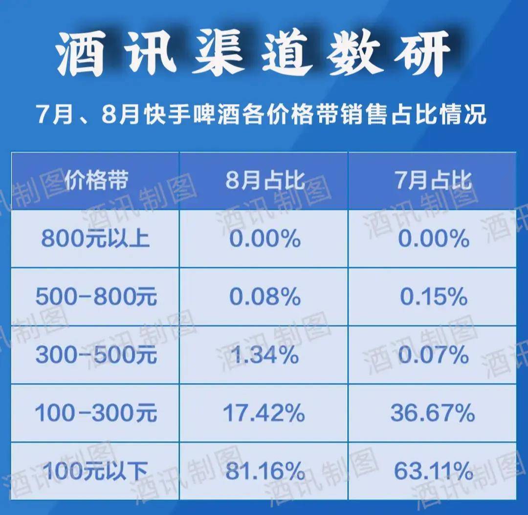 即时零售这种“击穿底价”势头正持续向整个酒类市场扩散。酒讯携手飞瓜数据对快手8月酒水销售情况进行统计了解到,消费者在进行酒水消费时的价格倾向,已然与即时零售的低价氛围形成共振。